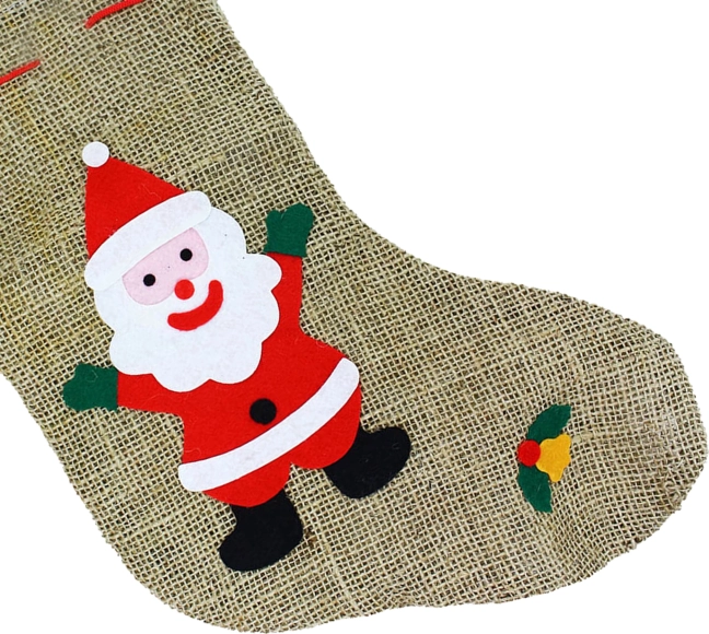 Apportez la magie des fêtes à la maison avec ce bas de Saint‑Nicolas stylé en toile de jute naturelle. La boucle pratique permet de l’accrocher facilement à la cheminée, à une poignée ou à une rampe, et l’imprimé décoratif ajoute une touche festive à votre intérieur. Grâce à sa longueur de 38 cm, le bas accueille une généreuse sélection de sucreries, de fruits et de petits cadeaux.