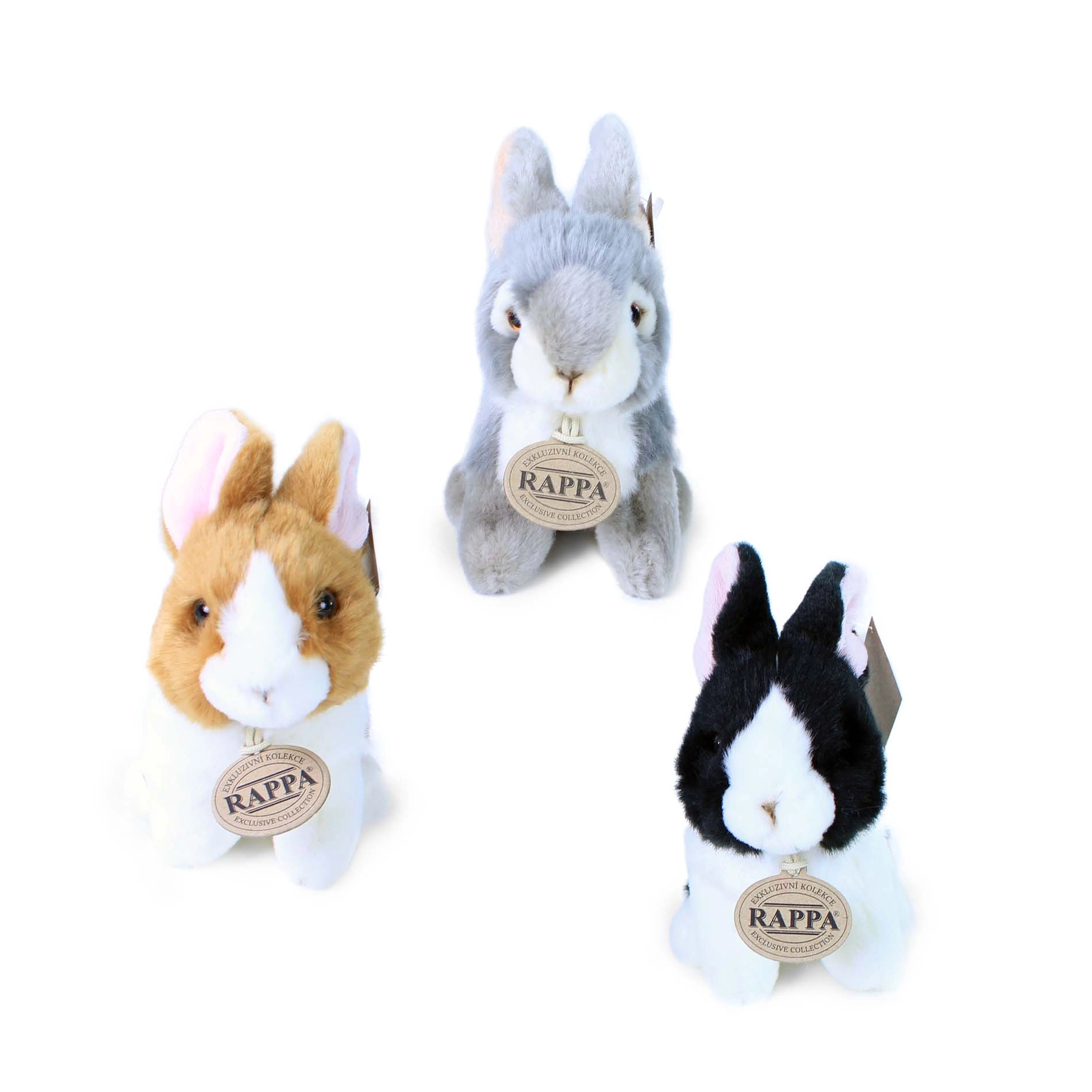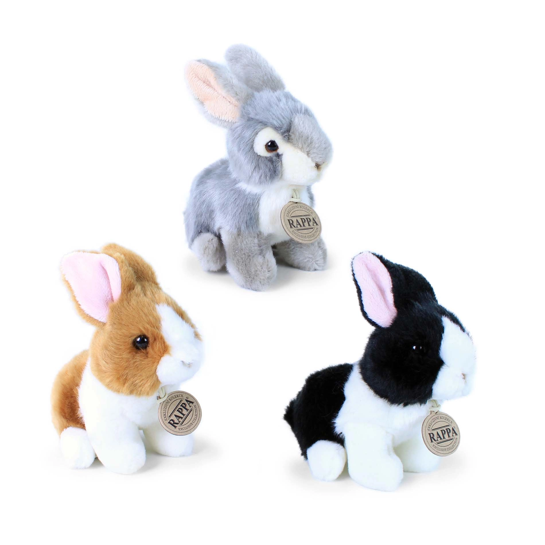 Choisissez entre gris, noir et blanc ou brun et blanc. Chaque lapin est un compagnon tout doux pour jouer et s’endormir.
