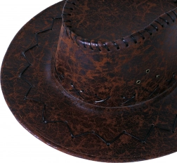 Vous cherchez un accessoire marquant pour un festival, une soirée, un cosplay ou la nature ? Ce chapeau de cow-boy marron se distingue par son similicuir avec surpiqûres décoratives sur le pourtour et la calotte. Il se combine facilement avec des tenues décontractées ou thématiques et vous donne une assurance au style western.