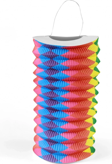 La lanterne arc-en-ciel apporte des couleurs joyeuses et une atmosphère ludique à chaque événement. Elle se distingue par ses bandes marquées dans des tons de rouge, jaune, vert et bleu, qui ressortent magnifiquement de jour comme de nuit lorsqu'elles sont éclairées. C'est un excellent accessoire pour les défilés de lanternes, les anniversaires et la décoration saisonnière.