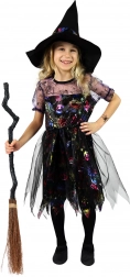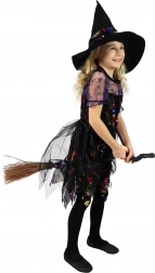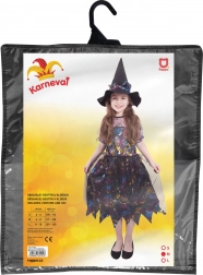 Offrez à la petite sorcière le déguisement parfait qui se démarquera à chaque fête. La robe légère et agréable dans des tons noir‑violet est ornée de motifs d’Halloween colorés, donnant au costume un look ludique et magique. Le chapeau pointu assorti complète le style classique de sorcière.