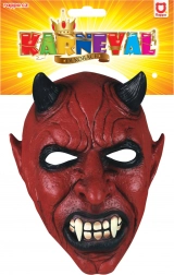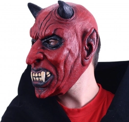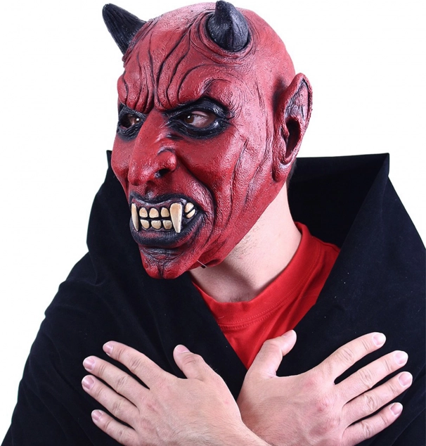 Masque en latex hautement détaillé avec des éléments réalistes de diable, y compris des cornes noires et des dents pointues, qui ajoutent à une authenticité terrifiante.
