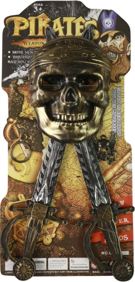 Les épées et le masque, avec des finitions décoratives détaillées, évoquent l’atmosphère de la vie pirate.