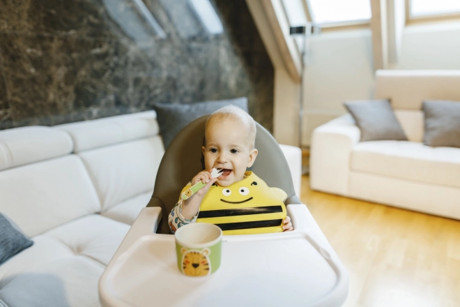 Un aide parfait pour chaque repas, le bavoir en silicone au motif Bee offre un design léger et confortable. Avec une fermeture réglable autour du cou, il est idéal pour chaque enfant.