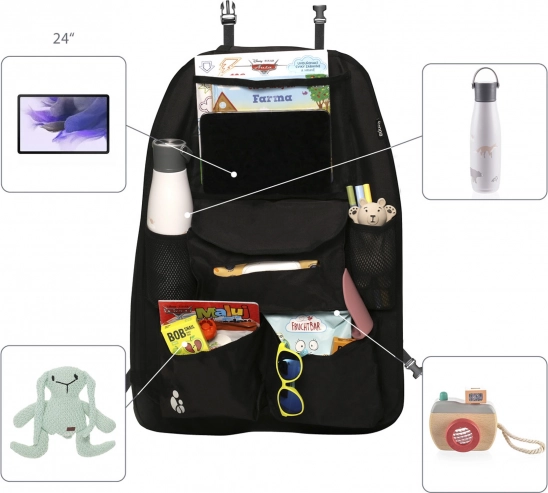Rendez vos trajets en voiture plus agréables avec cet organisateur conçu pour un confort et un ordre maximum. Il comprend une poche de protection pour tablette, compatible avec les tablettes jusqu’à 24 cm, permettant à vos enfants de regarder leurs dessins animés préférés pendant le voyage.