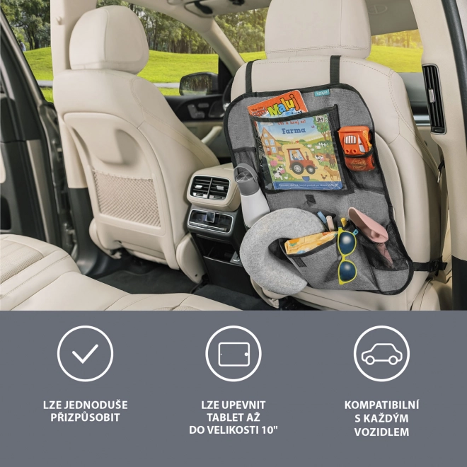 Pratique, l’organiseur de siège avec pochette pour tablette est le compagnon idéal pour chaque voyage avec des enfants.