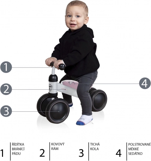 L'élément clé est la technologie 'silent wheels', qui offre une conduite silencieuse, permettant aux enfants de s'amuser sans bruit inutile. Le design attrayant de la trotti plaira autant aux enfants qu'à leurs parents. Grâce à son entretien facile, la trotti restera comme neuve pendant longtemps.