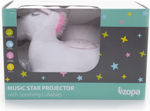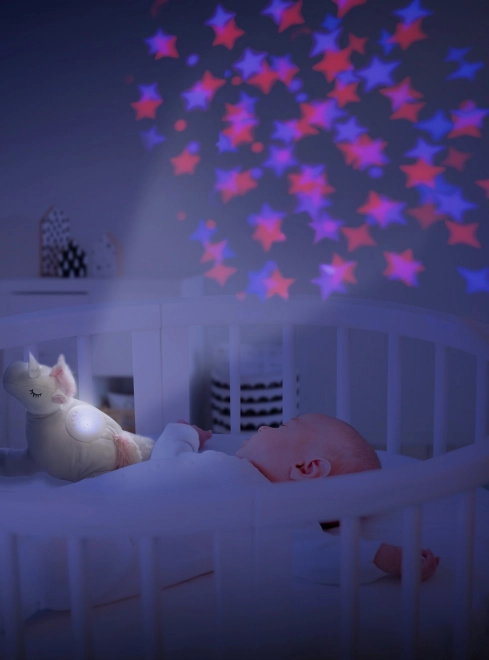 La licorne propose 10 berceuses et des sons de la nature comme les battements de cœur et le chant des oiseaux, qui aident les enfants à s’endormir paisiblement.
