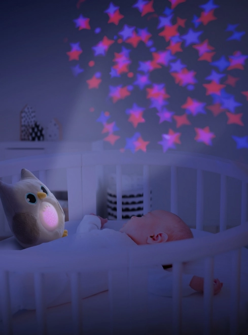 Le Hibou avec projecteur Zopa projette un ciel étoilé et joue des berceuses, idéal pour un sommeil paisible de l’enfant.