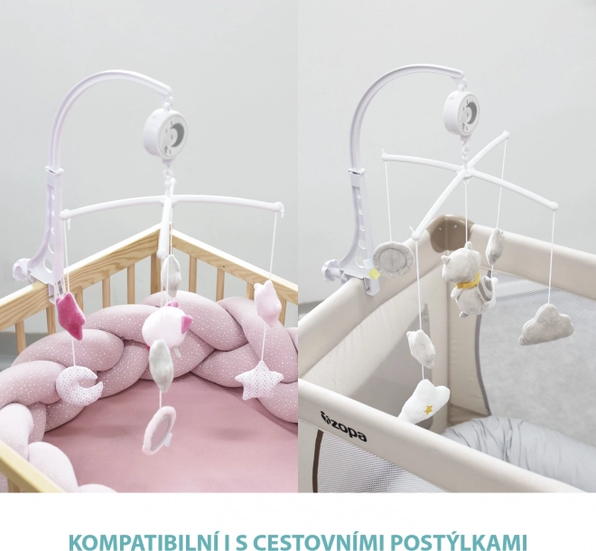 Le mobile est conçu pour les lits standards et son montage est très facile. Il dispose d’un mécanisme musical à remontoir qui fonctionne sans piles. Les jouets en peluche, fabriqués dans un matériau de qualité et sûr, agréable au toucher, peuvent être facilement détachés et utilisés comme doudous.