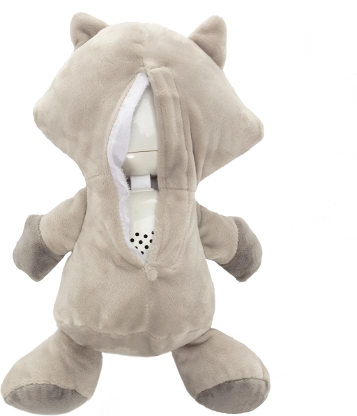 Le module à piles est rangé en toute sécurité dans le dos du raton laveur, protégé par une fermeture éclair. Ce compagnon d’endormissement crée chez les enfants un sentiment de sécurité et une routine de sommeil régulière.
