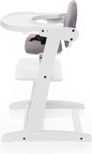 Son design élégant blanc et gris s’intègre dans tous les intérieurs. Les plateaux amovibles permettent d’installer l’enfant à la table familiale.