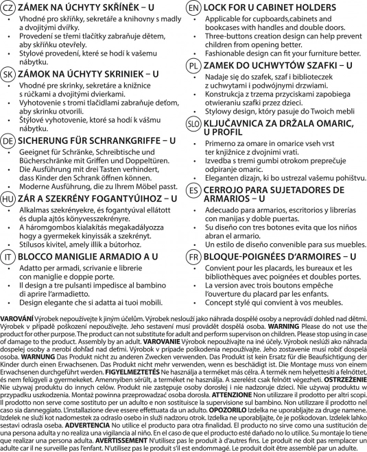 Verrou pour poignées d’armoire en U, blanc/gris