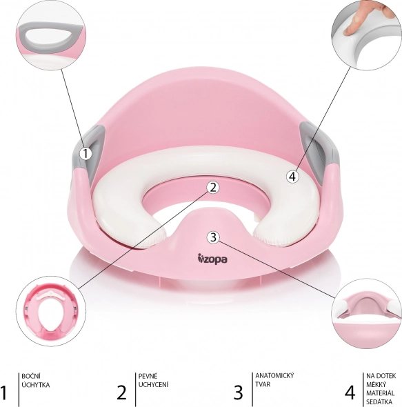 Le passage du pot aux toilettes classiques est un grand changement pour chaque enfant. Il devient toutefois ludique avec un assistant pratique : l’abattant WC ZOPA Coach. L’abattant est fabriqué en plastique résistant, non toxique, sans BPA, testé pour son innocuité. Pour un confort maximal, une garniture souple et imperméable, résistante aux fissures et aux déformations, est fixée à la structure robuste de l’abattant. Des poignées astucieusement placées offrent un bon soutien en position assise.