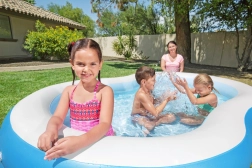 La piscine gonflable BESTWAY est un excellent choix pour le jardin comme pour la cour. Le matériau en vinyle robuste garantit une longue durée de vie et une résistance aux dommages mécaniques comme aux UV. Deux anneaux gonflés séparément forment des parois solides et confortables, qui assurent la stabilité pour les jeux des enfants comme la détente des adultes.