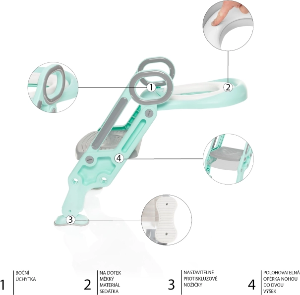 Grâce au réglage en hauteur, les marchepieds grandissent avec votre enfant jusqu’à ce qu’il n’en ait plus besoin. La structure robuste garantit que l’enfant se sentira en sécurité en grimpant comme en s’asseyant. Les pieds sont dotés d’une couche antidérapante spéciale qui offre stabilité et soutien. Les marchepieds comprennent également un siège doux et confortable qui sert de réducteur pour toilettes classiques. La forme anatomique du siège, associée à l’arrière surélevé, empêche parfaitement toute salissure involontaire.