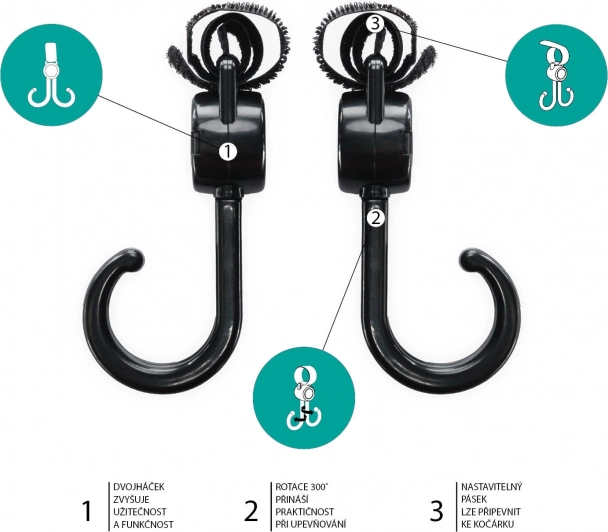 Pinces en plastique pour poussette, 2 pièces, noir et blanc, 7,5 × 5 cm