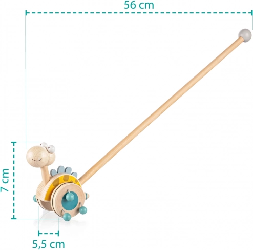 Le jouet favorise de manière ludique le développement de l’équilibre, de la coordination et de la force des petites jambes. Grâce à l’extrémité de la tige terminée par une boule en bois, la prise en main est sûre et rassurante pour les premiers pas.