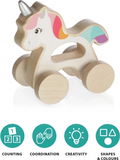 Légère et compacte, la licorne roulante est un excellent choix pour les petites mains d'enfants. Grâce à sa construction et ses grandes roues durables, elle se déplace facilement sur les tapis, le parquet et les terrains de jeu pour enfants. La licorne aide à développer la motricité, la coordination et la créativité de l'enfant. En outre, elle encourage les enfants qui préfèrent jouer en position assise à bouger. La licorne séduit aussi par son design mignon avec des détails colorés sur la crinière et la queue.
