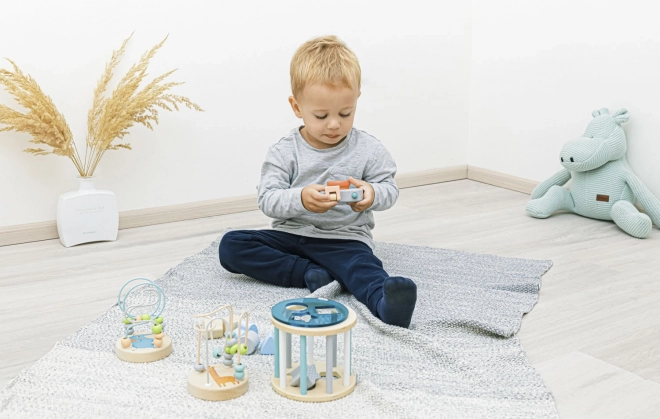 Le jouet d’insertion en bois actif offre aux enfants une manière interactive d’apprendre à reconnaître les formes et les couleurs. Le jouet est fabriqué en bois naturel de qualité et utilise des peintures à base d’eau, garantissant la sécurité des enfants. L’ensemble se compose d’un cylindre avec plusieurs ouvertures dans lesquelles s’insèrent des blocs de différentes formes et couleurs.