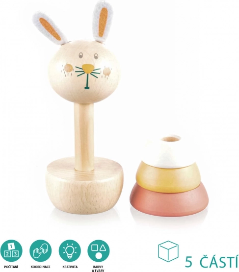 Occupez votre enfant pendant de longues heures avec ce magnifique jouet empilable en forme de lapin. Les enfants s’amusent avec les anneaux en bois qu’ils peuvent démonter et recomposer. Le design adorable du lapin attire et retient leur attention tout en favorisant, de manière ludique, le développement de la motricité et de la pensée spatiale.