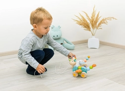La licorne à tirer en bois est un excellent compagnon pour les enfants lors de leurs premiers pas. Grâce à son mécanisme simple, ses ailes et sa queue battent pendant la marche, amusant les enfants pendant de longues heures.