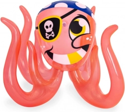La pieuvre gonflable colorée et les éléments ludiques transforment la petite piscine en aire de jeux aquatique interactive.