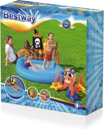 Les enfants adoreront le bateau pirate avec gouvernail, la joyeuse pieuvre et quatre étoiles gonflables pour les jeux de lancer. Installation rapide sans outils et faible poids pour une manipulation et un rangement faciles. La capacité de 84 l est idéale pour se rafraîchir lors des journées chaudes.