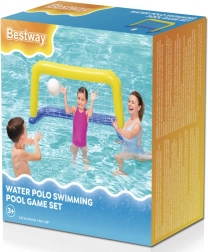 Le but gonflable BESTWAY apporte une dose de divertissement sportif à chaque piscine. Sa conception légère et sûre en vinyle de qualité assure une longue durabilité, tandis que le filet en nylon capte chaque tir avec fiabilité. Grâce aux valves de sécurité, le but est prêt à jouer en un rien de temps et se range tout aussi rapidement.