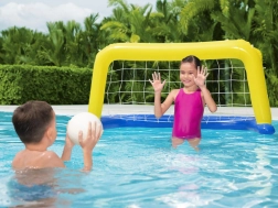 Des dimensions d’environ 137 × 66 cm le rendent idéal pour les piscines domestiques. Le set inclut également un ballon, pour jouer immédiatement au water-polo, au tir au but ou à des compétitions familiales. Une excellente manière de faire bouger enfants et adultes et de profiter d’une animation estivale active dans la piscine.