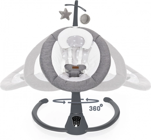 Le transat Lullaby est un assistant pratique pour les parents occupés. Grâce à la structure rotative à 360°, vous adaptez facilement la direction et le style de balancement – un doux bercement latéral rappelle le berceau, tandis que le balancement avant/arrière évoque les bras d’un parent. Cinq niveaux d’intensité, un minuteur de 8/15/30 minutes et le déclenchement automatique à la détection des mouvements de bébé apportent confort et flexibilité au quotidien.