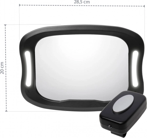 Gardez un œil sur votre enfant pendant la conduite, même dans l’obscurité. Le miroir pratique avec éclairage LED permet de voir l’enfant même en conditions de faible luminosité. Le miroir est résistant aux chocs et se fixe facilement sur les appuis-tête des sièges. Il offre une longue autonomie de batterie et peut être commandé à l’aide d’une télécommande (miroir 3× AA, télécommande 2× AAA). Les piles ne sont pas incluses.