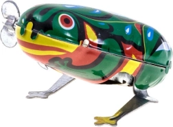 Cette jolie petite grenouille-jouet est faite de métal dans une belle couleur verte et est alimentée par un mécanisme à ressort qui se remonte avec une clé. La grenouille fait sourire toutes les générations. Grâce à ses petites dimensions, elle tient facilement dans la main d'un enfant et est parfaite pour des moments amusants, par exemple cachée dans un sac à main. Assurez-vous de l'avoir comme talisman pour la chance !
