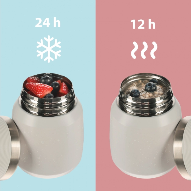Une thermos alimentaire de qualité de 300 ml pour plats et purées conserve les aliments chauds jusqu’à 12 heures et froids jusqu’à 24 heures. Elle est fabriquée en acier inoxydable de haute qualité, résistant à la corrosion. Le couvercle hermétique empêche toute fuite. Grâce à l’isolation sous vide, l’extérieur de la thermos ne chauffe pas lorsqu’elle contient des aliments chauds.