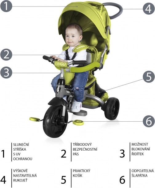 - Possibilité de débrayer les pédales lorsque le parent pousse le tricycle.