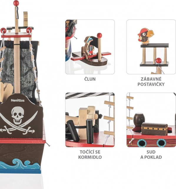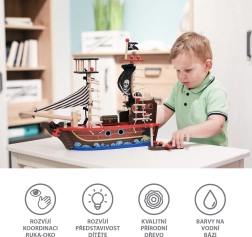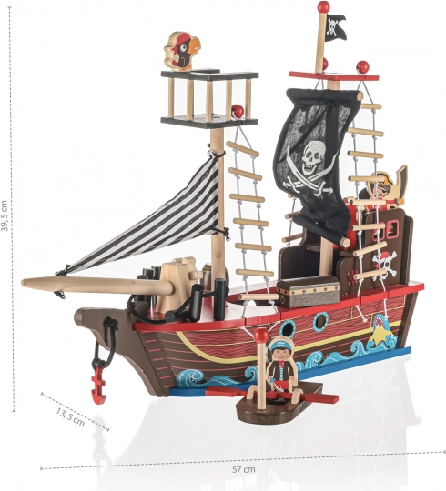 Le bateau pirate en bois renforce la motricité fine et l’imagination, offrant des heures de jeu inspirant pour les enfants.