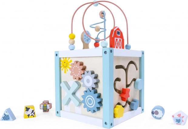 Ce cube d’activités en bois est un jouet idéal pour les enfants à partir de 18 mois. Des éléments éducatifs et ludiques tels que le labyrinthe de perles, le trieur de formes et les engrenages rotatifs plongent les enfants dans l’univers de l’apprentissage et du jeu. Le cube est non seulement amusant, mais contribue aussi au développement de la pensée logique et spatiale.
