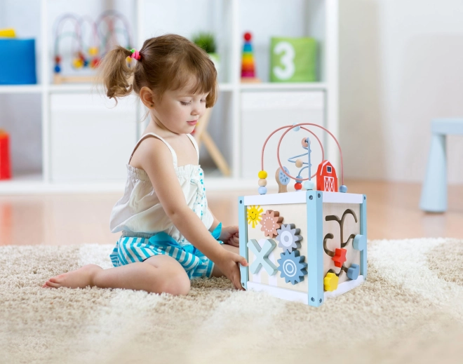 Le cube comprend diverses activités qui stimulent le développement des compétences motrices et la créativité des enfants.