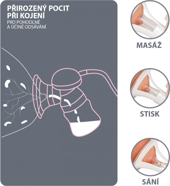 Le tire-lait manuel BASIC est équipé d’un insert en silicone souple ZOPA 3D unique. Grâce à cet insert, le tire-lait imite parfaitement la succion naturelle du bébé. L’insert Zopa 3D divise le processus d’extraction en trois phases: massage, pression et succion. Cette répartition garantit une efficacité maximale lors de l’extraction tout en évitant les sensations désagréables que le tirage peut provoquer.