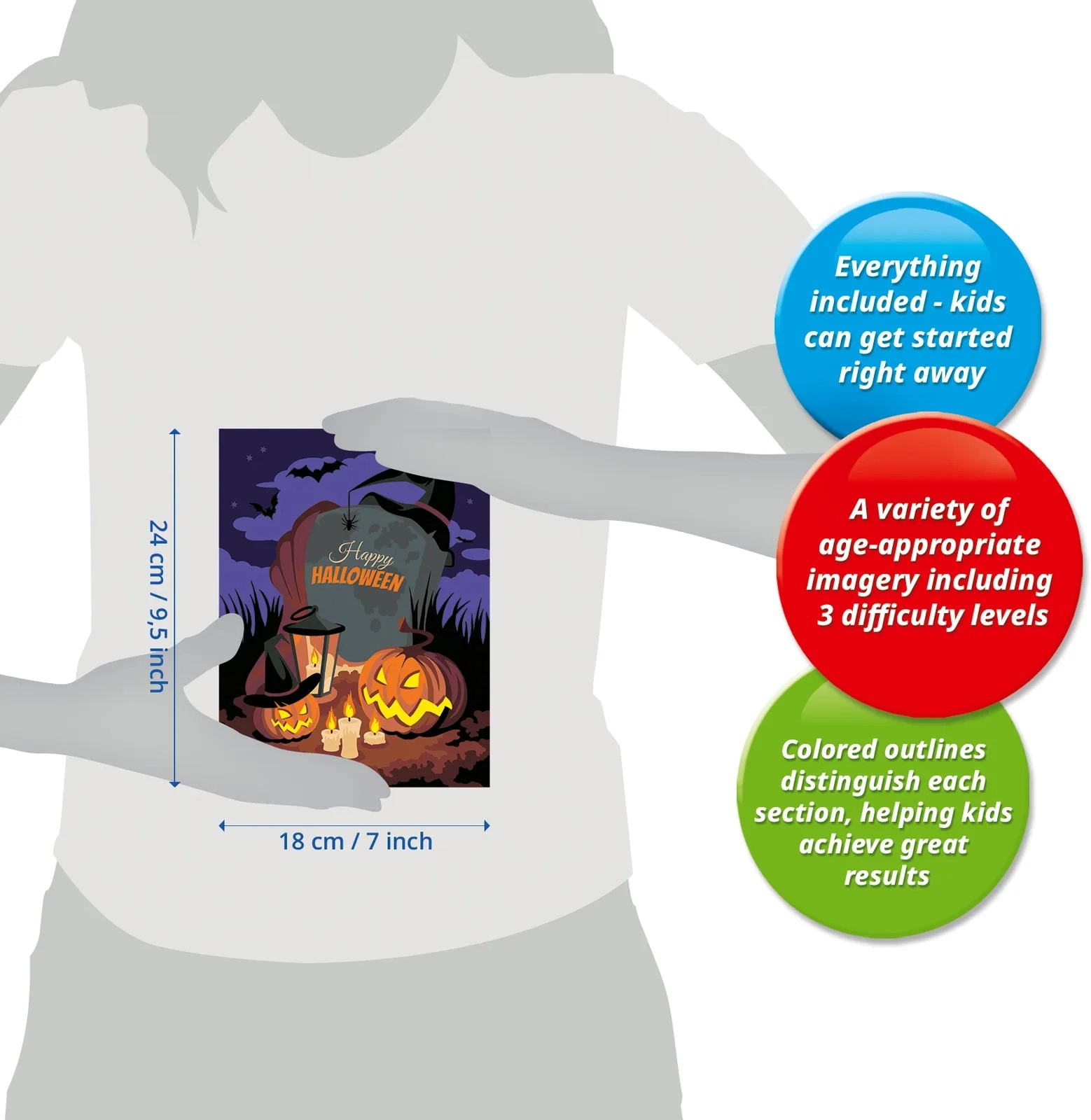 Plongez dans l’atmosphère d’Halloween et coloriez le motif pas à pas selon les numéros. La qualité de la marque RAVENSBURGER garantit des couleurs éclatantes, des lignes précises et la joie d’un résultat abouti, parfait comme décoration saisonnière pour la chambre d’enfant ou le salon.