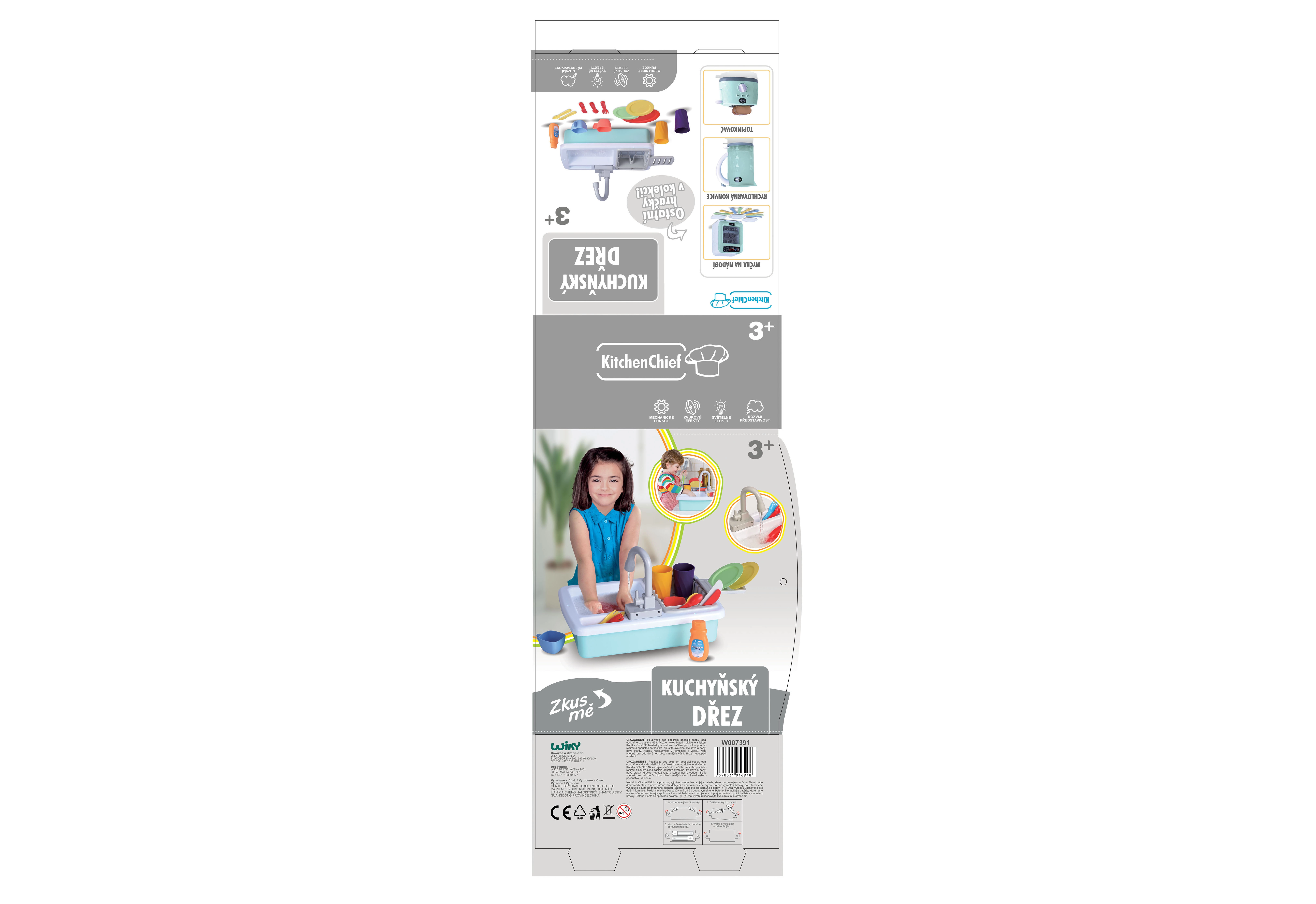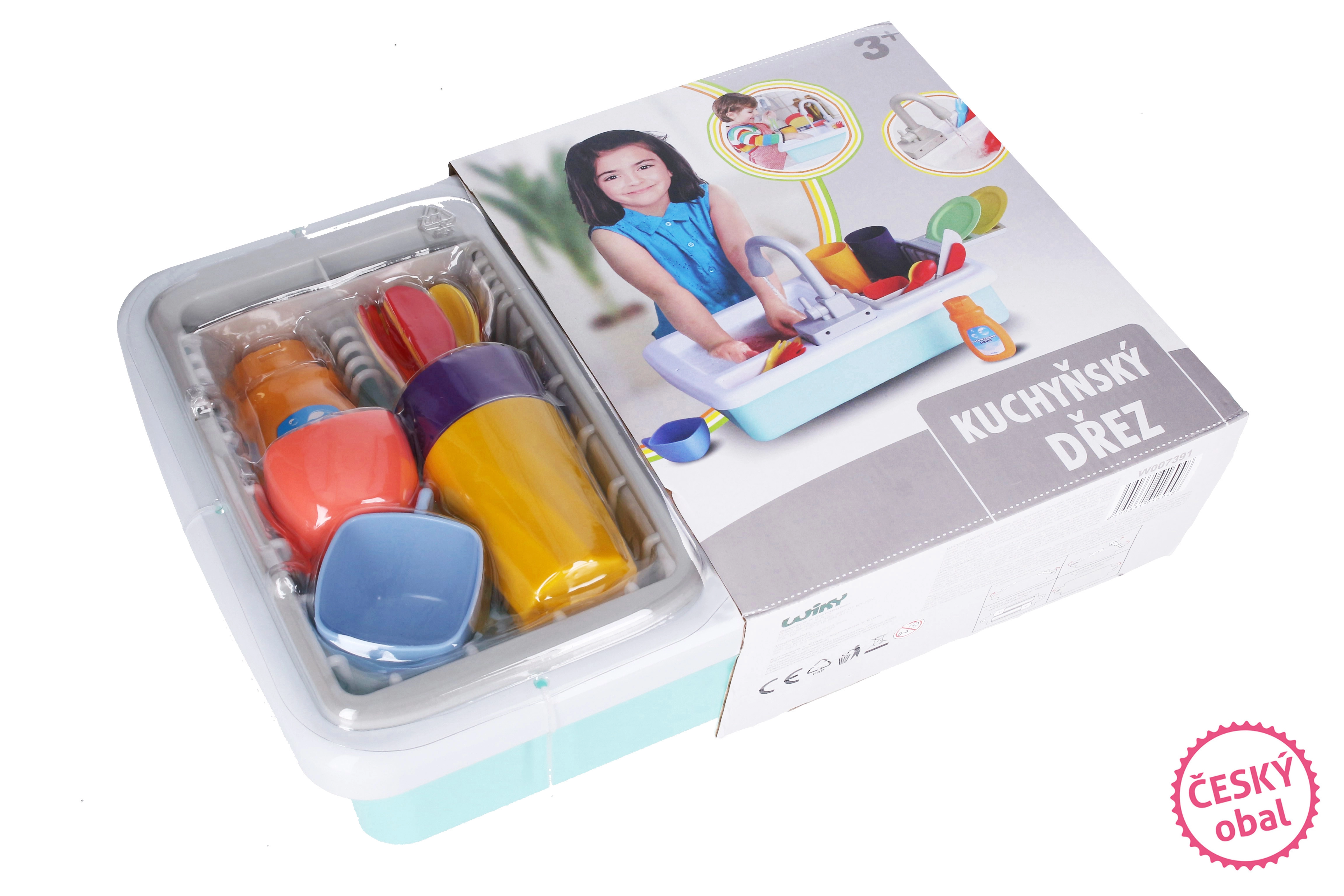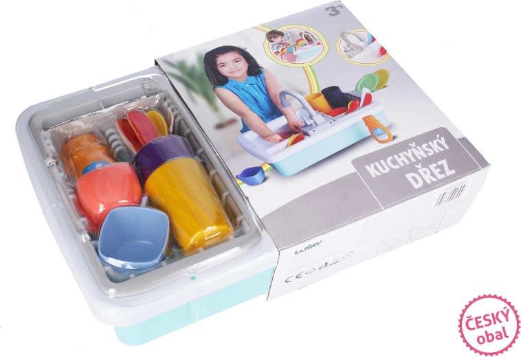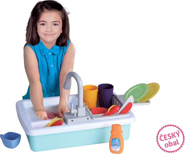 Le paquet comprend un équipement de cuisine pratique pour commencer immédiatement : tasses, assiettes, gobelets, couverts, ainsi qu’un liquide vaisselle pour un jeu encore plus réaliste. L’évier est un excellent complément à toute cuisine pour enfants et divertira pendant de longues heures.