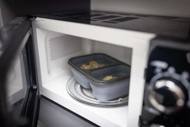 La boîte est divisée en 2 compartiments indépendants, évitant ainsi que les aliments ne se mélangent.