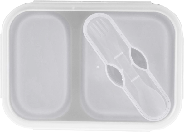 Grande boîte à goûter en silicone avec couverts, Dove Grey