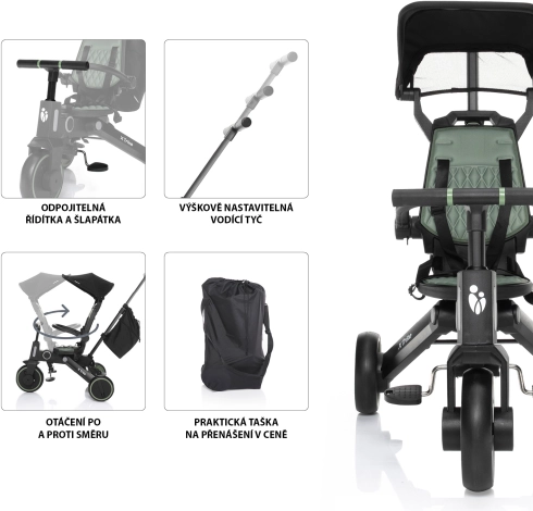 Ce tricycle évolue avec l’enfant et s’adapte facilement aux différentes phases d’apprentissage de la conduite. Grâce à la désactivation du guidon et au réglage en hauteur de la tige de guidage, les parents le manœuvrent confortablement comme une poussette, tandis que les enfants profitent de plus de liberté et de plaisir. Le coussin d’assise rembourré et le dossier sont amovibles et faciles à nettoyer.