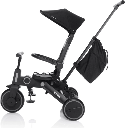 Le tricycle pour enfants multifonction 7 en 1 X Trike est une alternative intelligente à la poussette et un excellent pas vers la draisienne puis le vélo. Il offre un contrôle via une tige de guidage, des pédales amovibles, une assise rembourrée et un pliage compact pour un transport facile. La sécurité est assurée par un harnais 5 points, une barre de sécurité réglable, un frein et une capote pare-soleil.