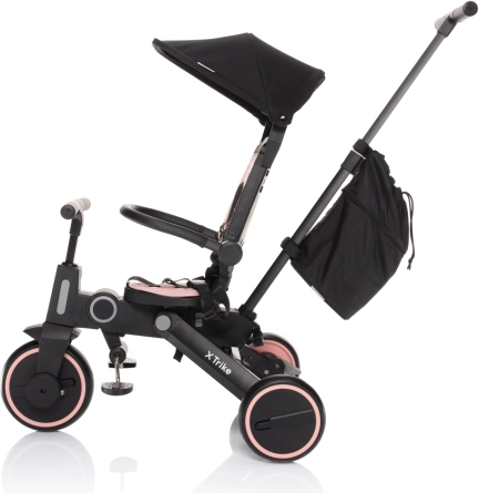 Le tricycle multifonction X Trike offre jusqu’à 7 modes d’utilisation, de la poussette à la conduite autonome. Grâce à la barre de guidage réglable, aux pédales amovibles et au pliage compact, il est idéal pour les déplacements. La sécurité est assurée par un harnais 5 points, une barre de protection réglable, une capote anti-soleil et un frein à pied.