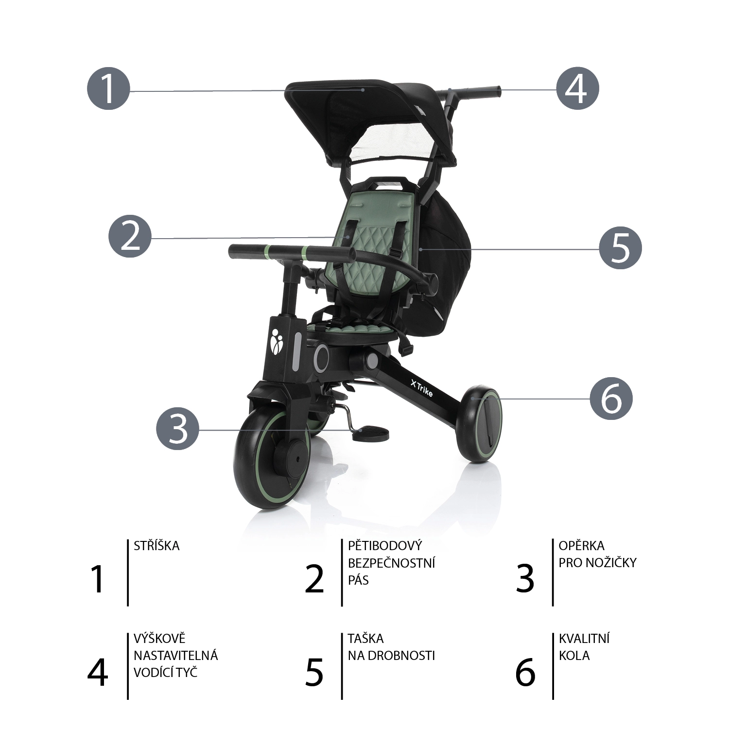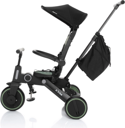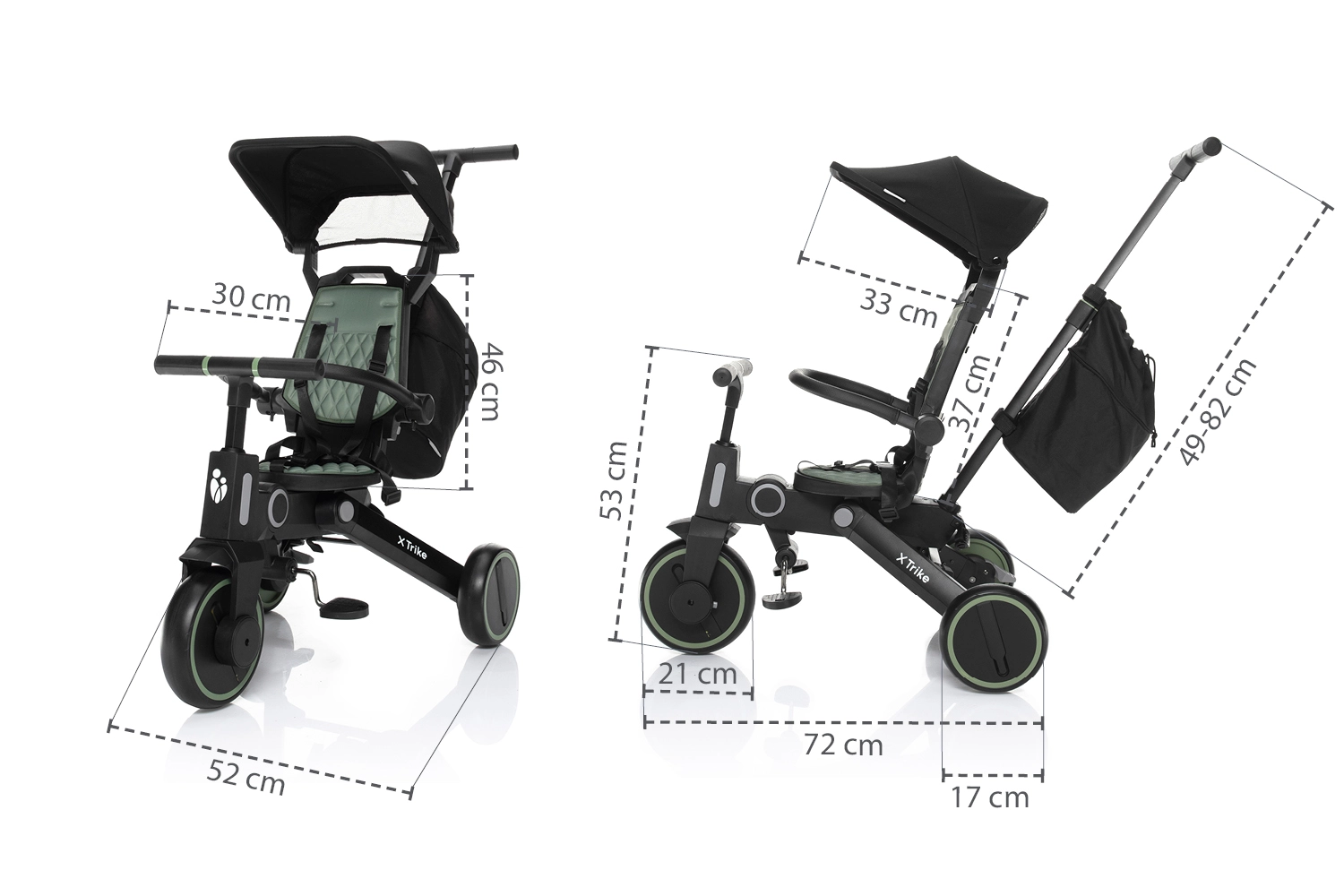 Le tricycle multifonction pour enfants X Trike 7 en 1 est une alternative intelligente à la poussette, qui évolue avec l’enfant. Il offre la conduite face à la route ou face au parent, un contrôle via la tige de guidage et un pliage facile au format compact. Pour un confort et une sécurité maximaux, il dispose d’un siège rembourré, de harnais 5 points, d’une barre de sécurité réglable, d’une capote pare-soleil et d’un frein à pédale. Les pédales amovibles peuvent servir de pédales ou de repose-pieds.