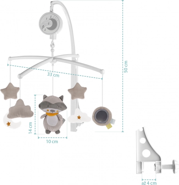 Le montage est simple et le mobile s’adapte à la plupart des lits bébé standards. Le mécanisme musical à remontoir fonctionne sans piles, offrant un fonctionnement silencieux et fiable. Les suspensions en peluche sont fabriquées avec des matériaux de qualité, sûrs et agréables au toucher et peuvent être facilement retirées – elles feront aussi de petits compagnons câlins.