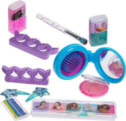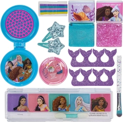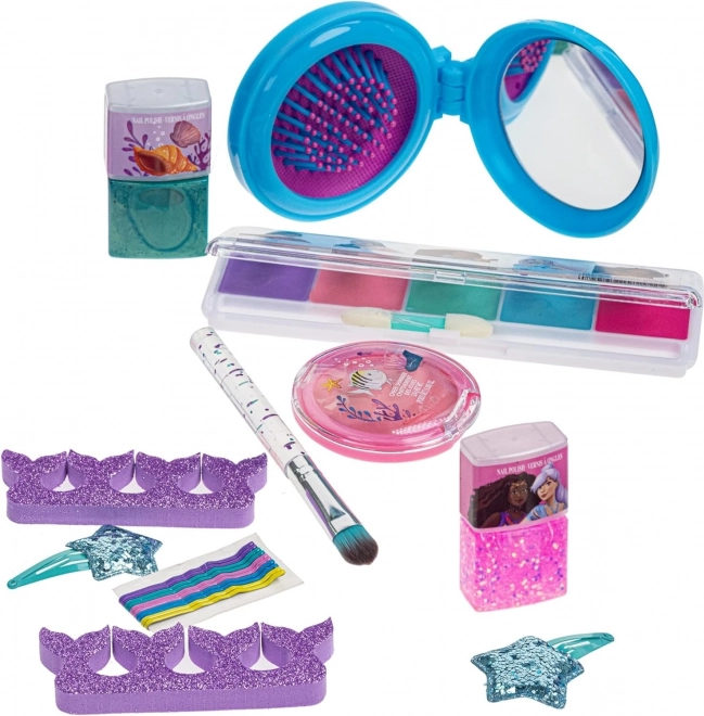 Un set de maquillage magique inspiré du conte La Petite Sirène11 pièces sûres pour un maquillage et une coiffure ludiques : vernis pelables, palette de fards à paupières, blush, paillettes pour le corps, barrettes et pinces. Le tout a une composition non toxique et est facilement lavable à l’eau.