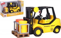 Le chariot élévateur jaune et noir est un complément parfait à toute collection de jouets pour enfants. Ce modèle est destiné aux conducteurs habiles qui apprécieront sa partie avant mobile adaptée au levage de palettes.